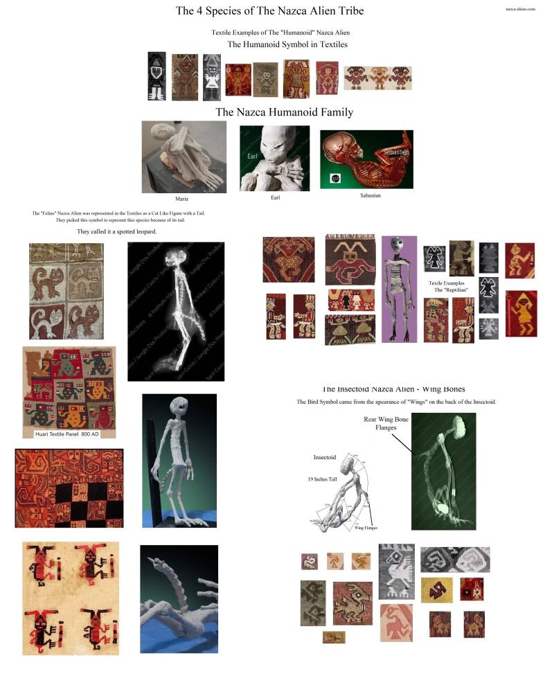 Over 50 Nazca Textiles of the Moche, The Chim'u and The Huari People tell the story and help date the three fingered and three toed Nazca Aliens.