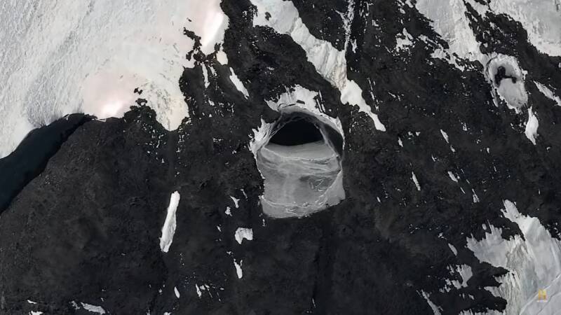 Huge Antarctic Tunnel Entrance . . .